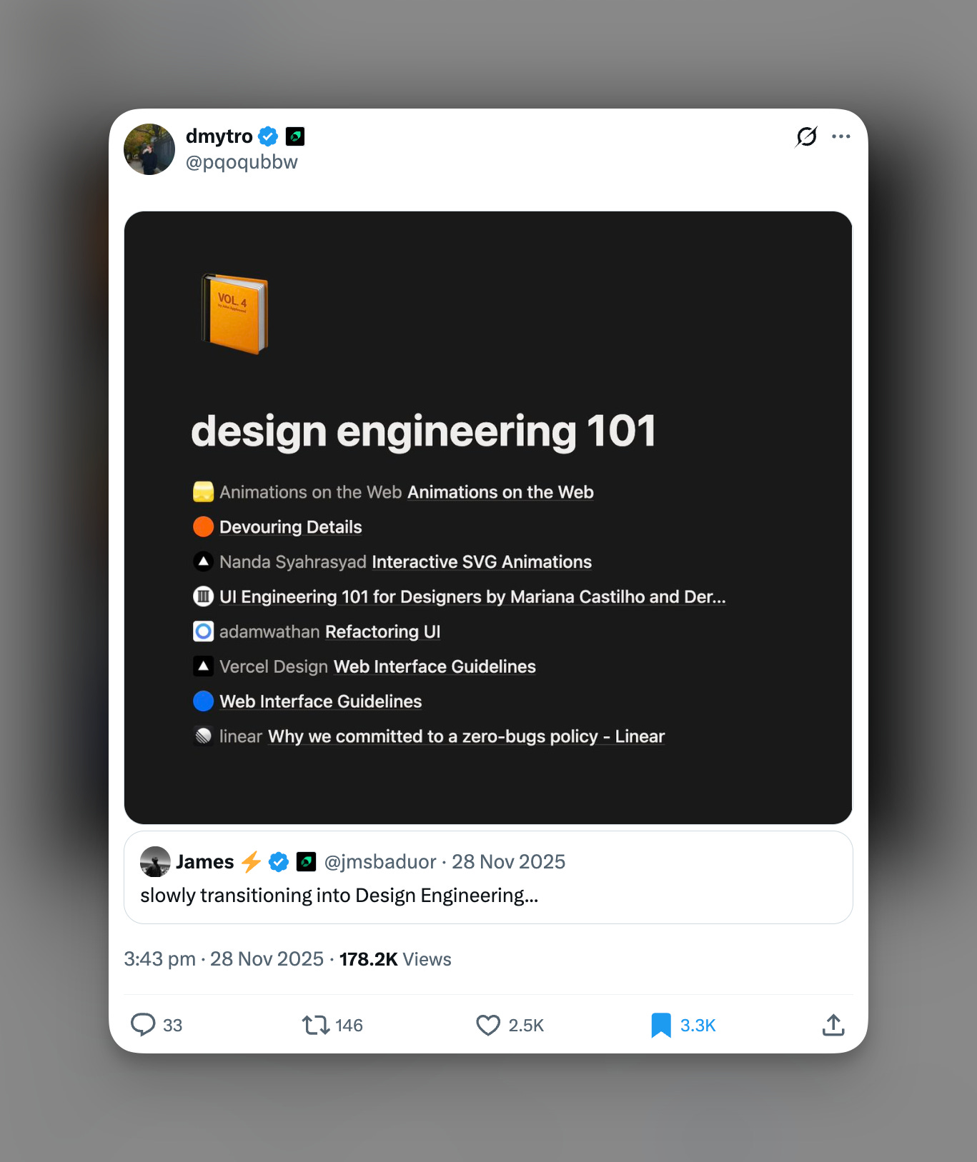 The real turning point was finding @emilkowalski and his course. In the course, he talked about why it’s so important to share what you’re building. That was literally the starting point for everything. I decided right then to post all my UI experiments while I was learning design engineering, mainly to get feedback from people who were into the same stuff.